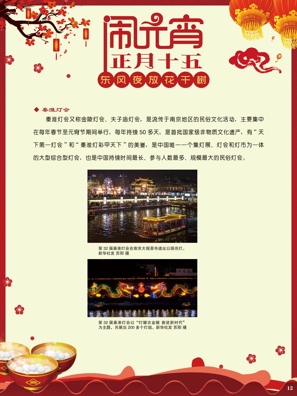 《东风夜放花千树——正月十五闹元宵》主题展览分为五个单元:“源远流长 瑰丽传说”“追星揽月 向往圆美”“灯火辉煌 乐中斗智”“龙腾狮跃 共庆新春”“诗意融融 岁月如歌”。策展团队特别策划了首批国家级非物质文化遗产——秦淮灯会、趣味猜灯谜画谜、非遗项目——晓云绣花龙、软萌创意汤圆展示四大板块,致力于为观众呈现一个充满年味、欢天喜地的元宵佳节,欢迎社会各界朋友前来观展!
