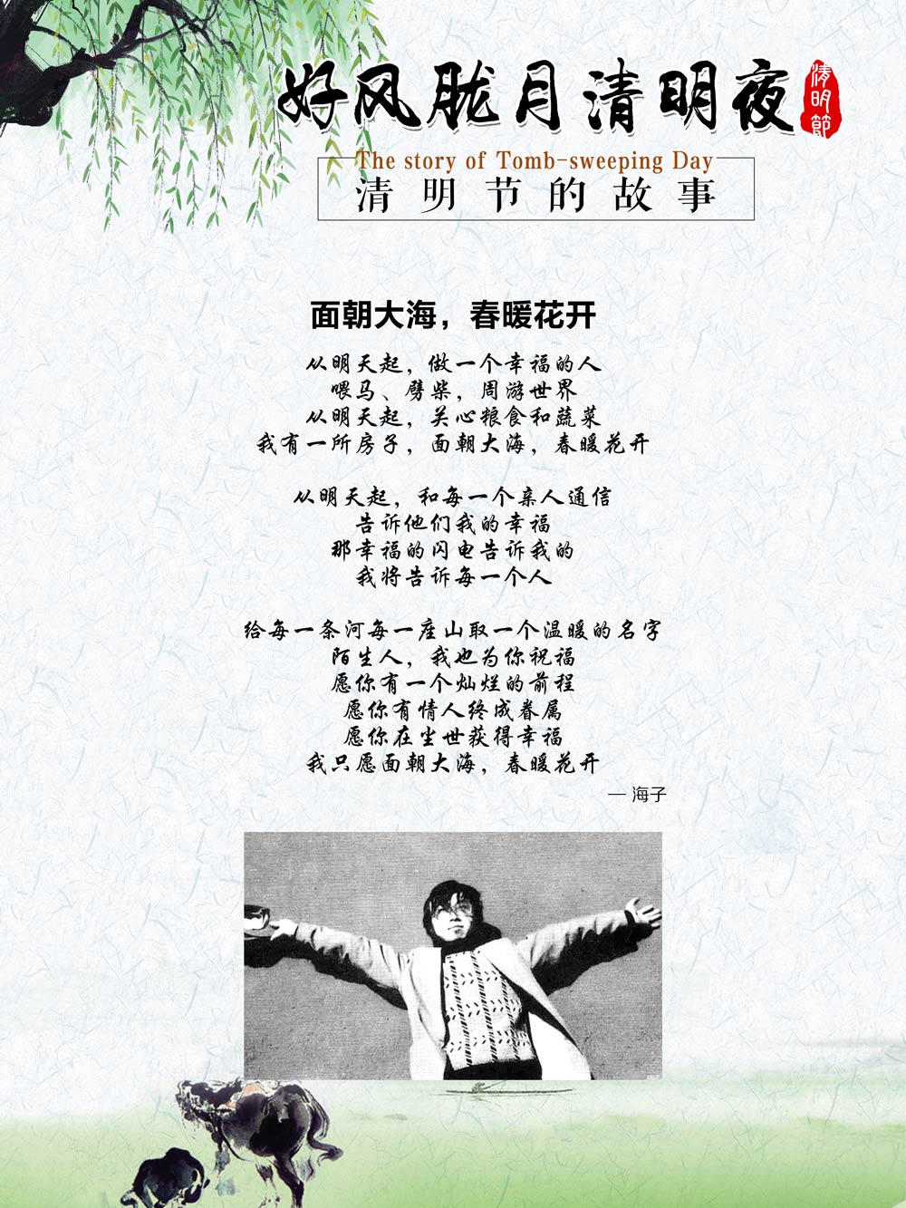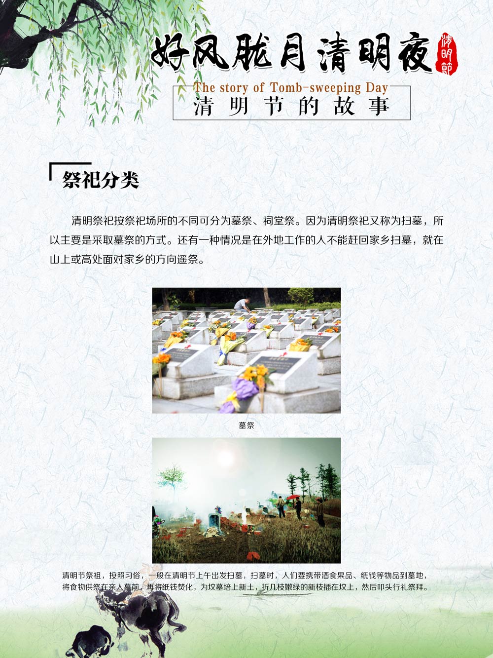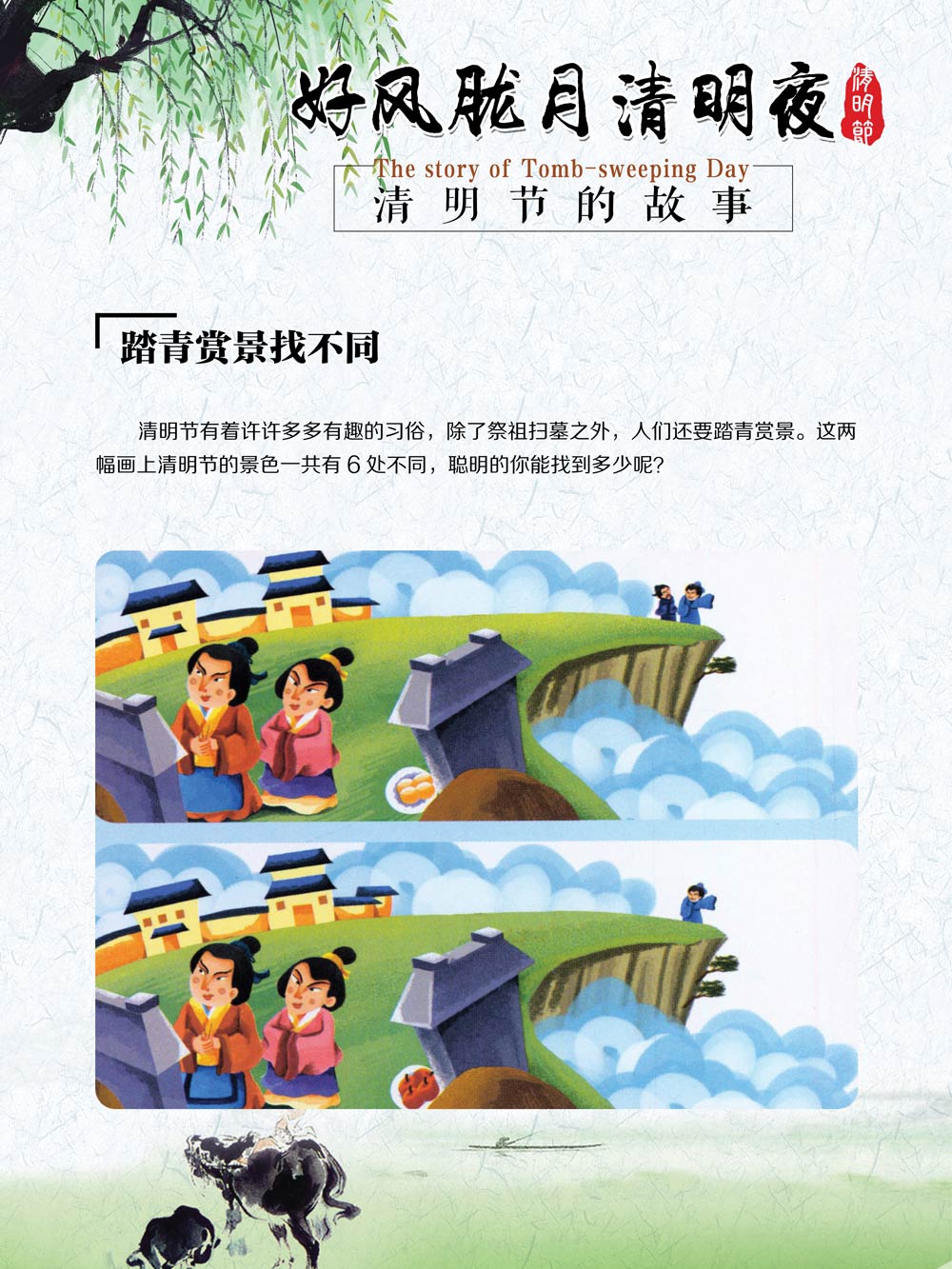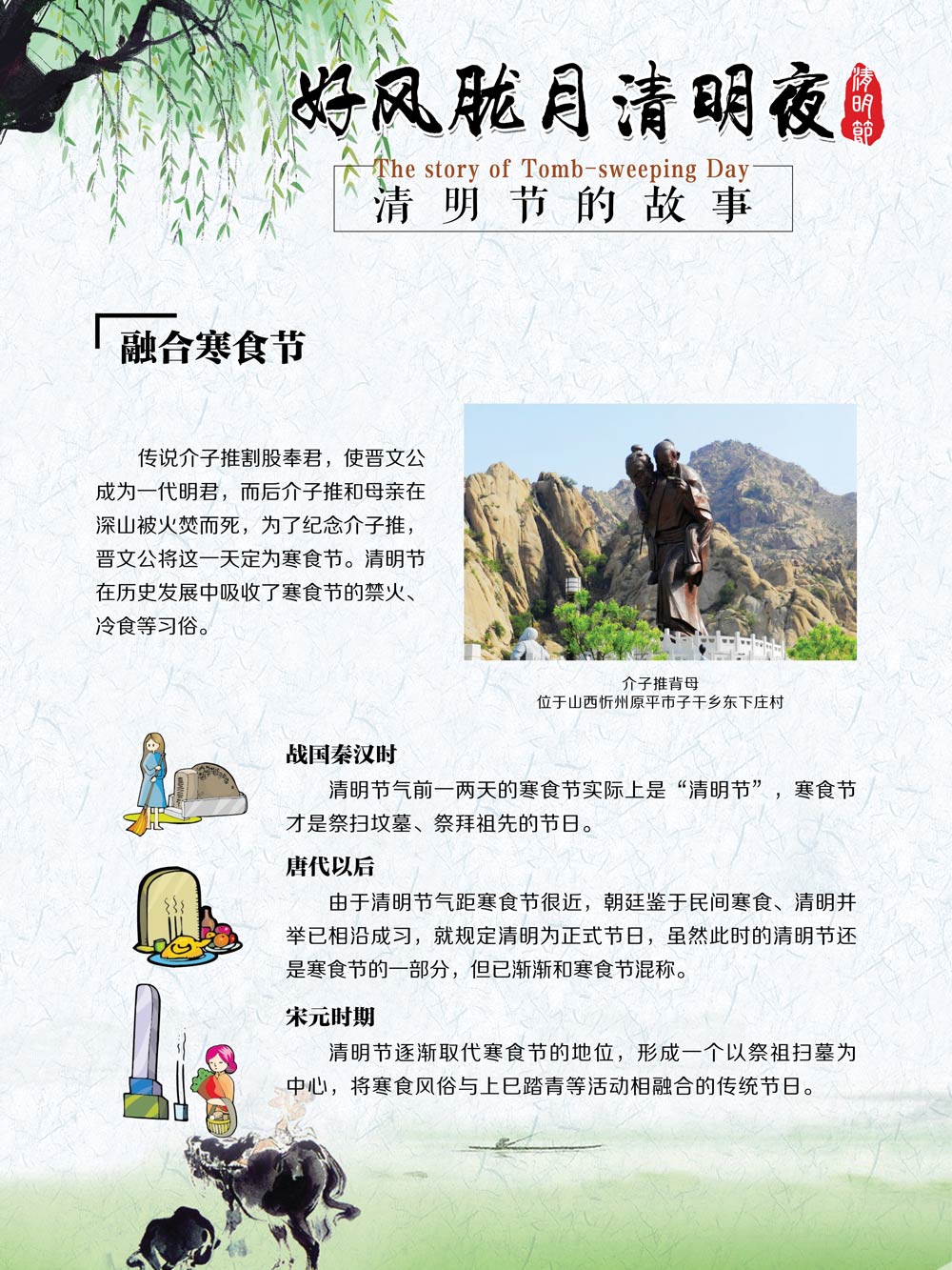 《好风胧月清明夜——清明节的故事》主题展览共分为五个单元:“节日溯源 有容乃大”“同归桑梓 慎终追远”“插柳踏春 环保健身”“清明知味 风俗食物”“吟咏绵延 清明永驻”,其中特别策划了“国共两党公祭黄帝陵”、“毛泽东祭黄帝陵文”、“孙中山题词黄帝陵”、国家非物质文化遗产项目“大槐树祭祖习俗”、互动体验“网上祭英烈”和“踏青赏景找不同”六大看点,让您全方位多层次地体验清明节的文化内涵与风姿魅力。 春生孳乳,万物繁炽,天明地洁,气象清朗。时值农历阳春三月,清明节到来之际,我们特别举办此展览,以期在现代文明的催护下,共守传统文化根脉,共勉文明传承重任,为推动社会主义文化繁荣兴盛,贡献我们的智慧和力量。愿清明常在,民族不老。