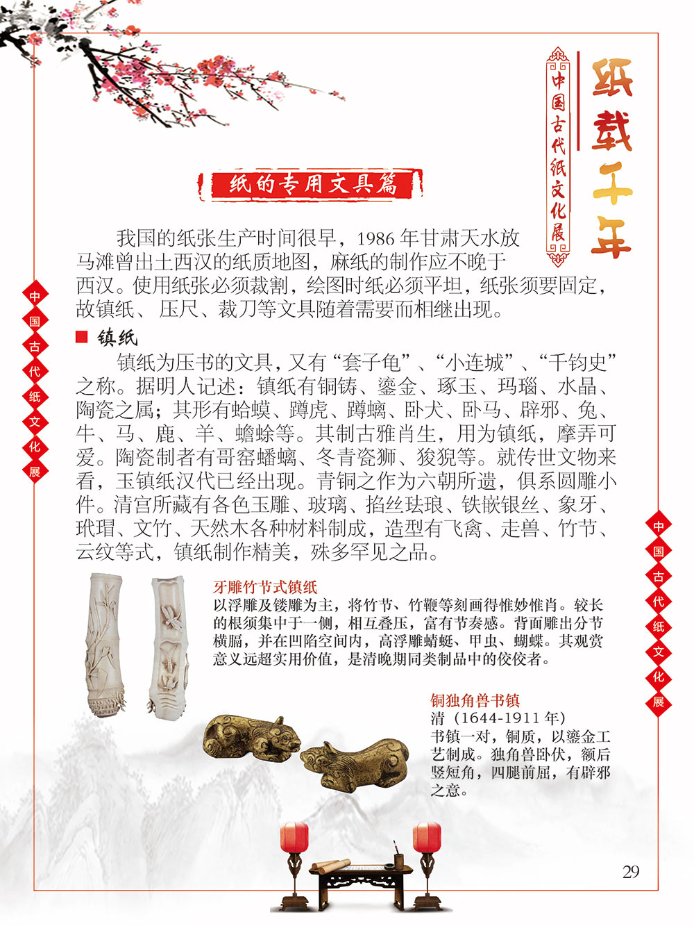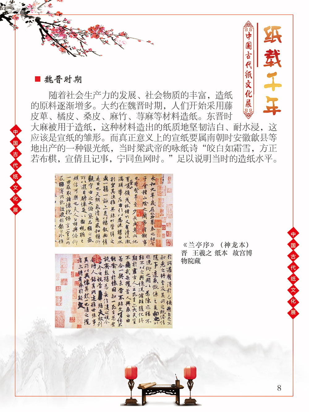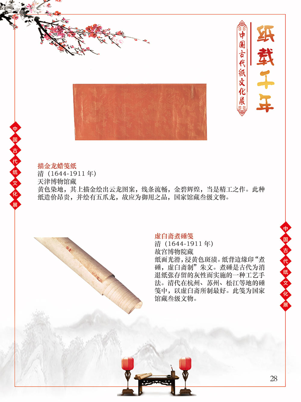 自人类文明于混沌中逐渐产生意识的曙光之初,繁衍生息于广袤世界每一隅的人们发现,语言、文字、记忆很难穿越时空枷锁得以保留,所以哪怕茹毛饮血、食不果腹,却愿意耗费为数不多的资源,力所能及地将自己的生活进行分享和记录。曾几何时,壁画、绳结、龟甲、竹简、羊皮纸……受限于介质本身,人类只能坚韧晦涩地用这些低效率的方式传播文化、传承文明。 人类史的时间轴上,纸出现的比较晚,但并不影响其重要的地位,纸的发明彻底颠覆了人类知识的传播和延续。没有纸之前,西汉东方朔用3000根竹简写奏章,汉武帝花两个月时间才能看完;“学富五车”的故事也源自于古人用车装竹简。人类文明的高速演进得益于以纸为介质的文化知识的广泛传播。 对古人而言,纸是怡情悦性的工具,是针砭时弊的载体,是离愁别绪的倾诉,是不遇之情的寄托。而对绝大多数的中国人而言,纸,是中国文化和历史之精华的浓缩,提及纸,就会让人联想到书写于纸上的辉煌历史,那源远流长的灿烂文化,更有那一幅幅酣畅淋漓的书法、惟妙惟肖的绘画闪过我们的眼前。 本展览旨在通过纸文化所展开来的历史文化与艺术图卷,帮助我们了解伟大祖国灿烂的文化和悠久的历史。