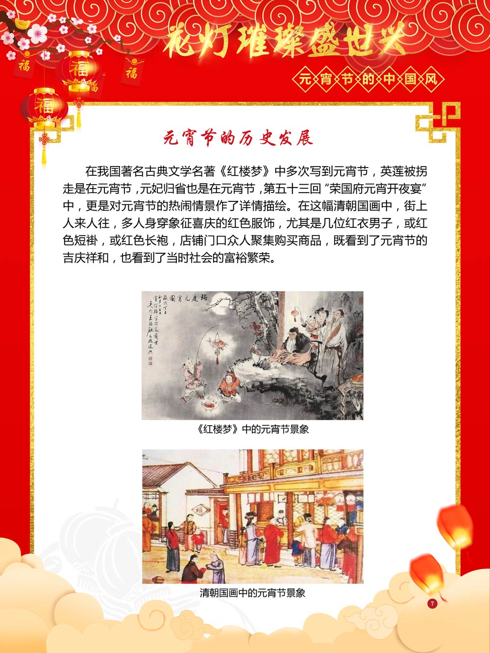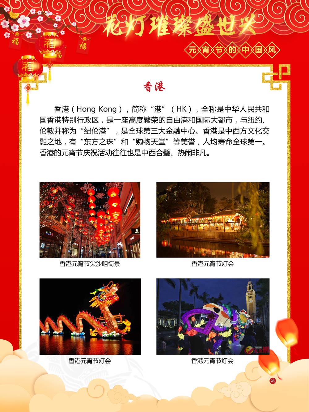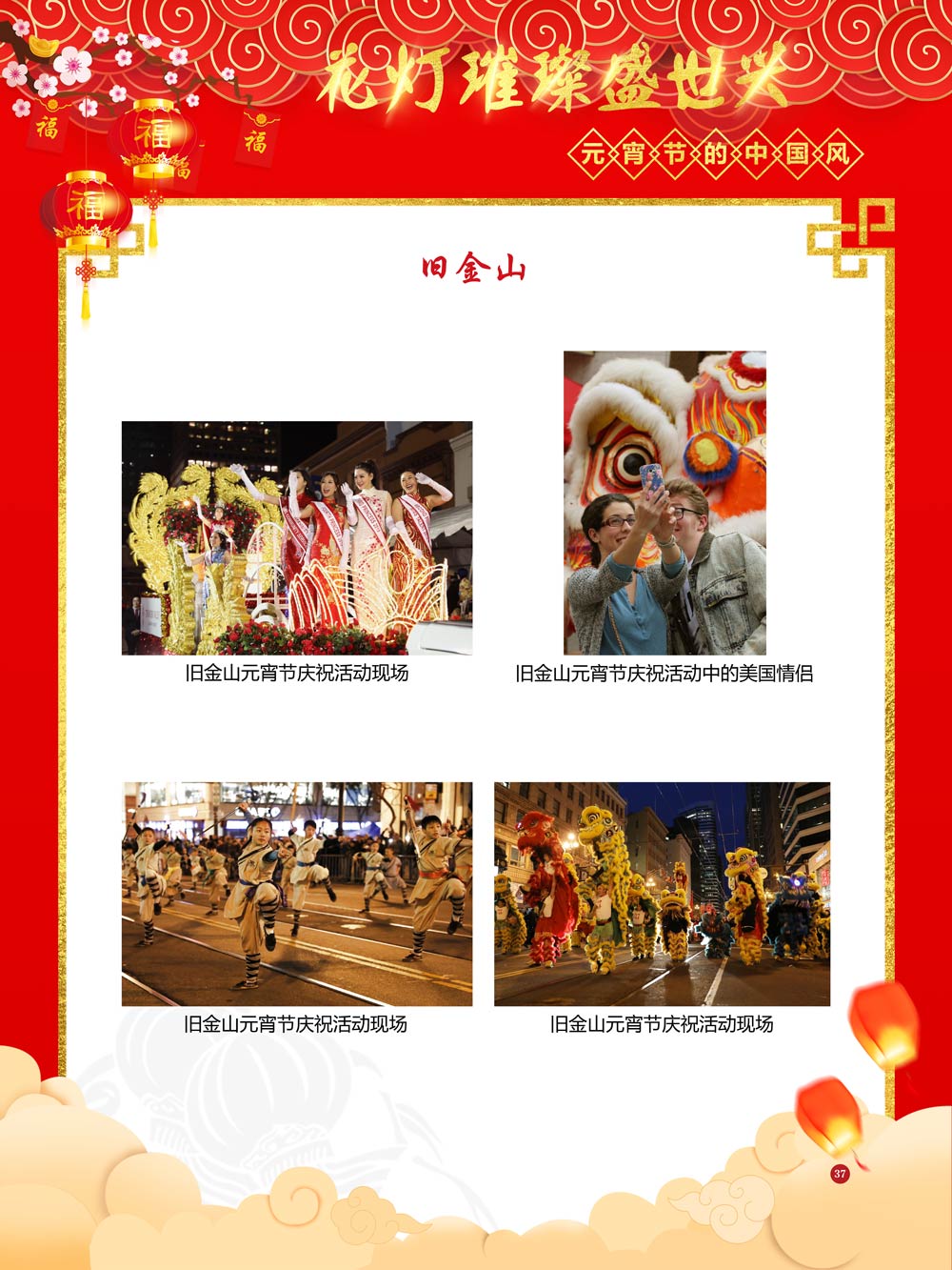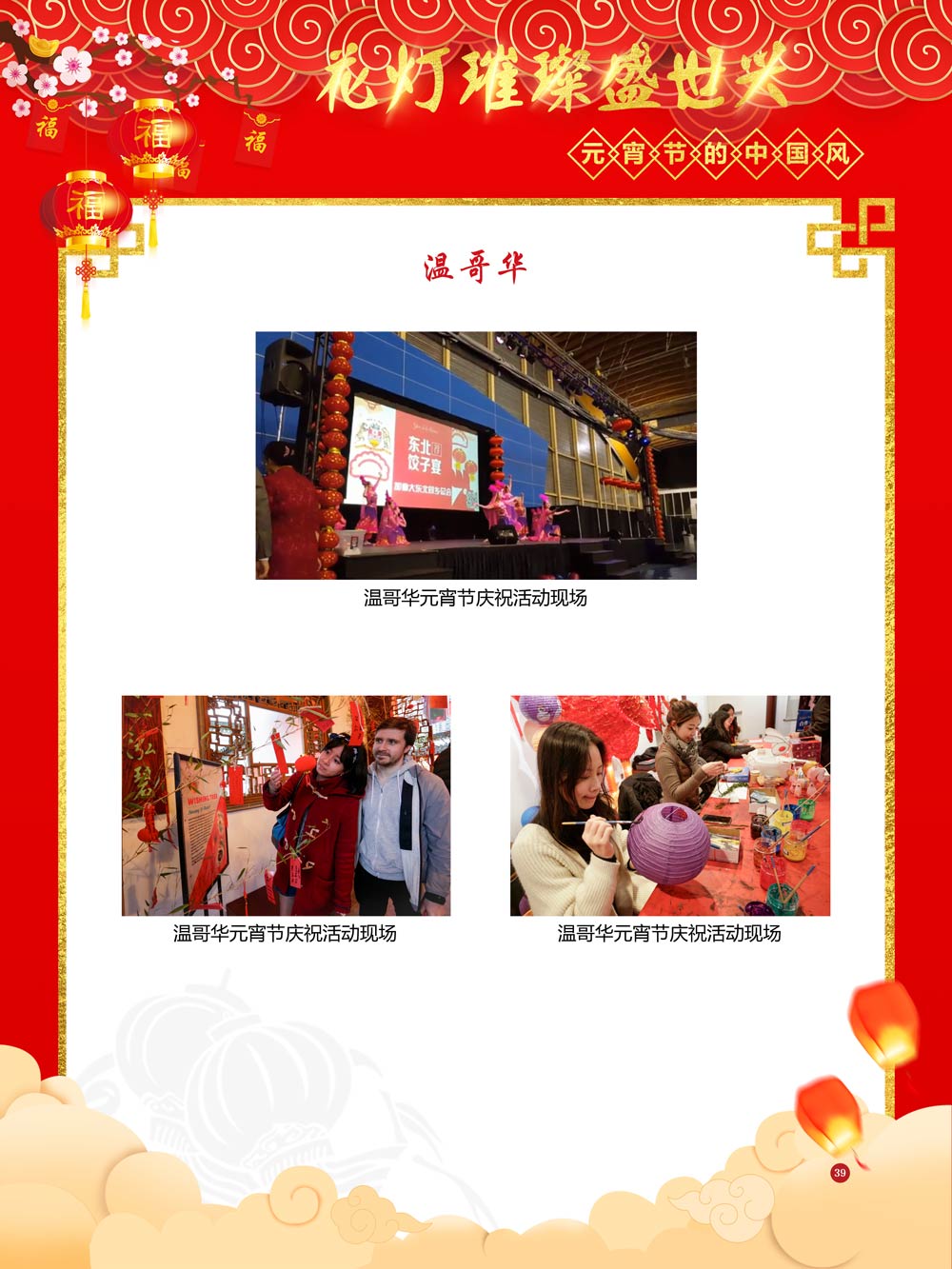 过完春节过十五,正月十五闹元宵!一年一度的元宵节又要喜气洋洋的登场了!值此佳节来临之际,我们首先给大家拜一个晚年,同时祝愿大家元宵节快乐!元宵节的历史源远流长,形成了其富有特色的节日风情,是中华民族的重要传统节日之一。 随着全球化时代到来后,全世界的各大文明形态和多种多样的文化迎来了有史以来最大的深度融合。中华传统文化也乘着文化全球化的快车,通过遍布世界各地的华侨华人传播到了世界上的每一个角落。元宵节也在此背景下,由一个中华传统节日逐渐的发展为一个具有浓重现代多元气息的世界节日。元宵节的庆祝活动也不在仅仅局限在中华文化圈内,而是逐渐地扩大到了更大的国际范围中。越来越多的世界各地居民领略到了我国元宵节独特的魅力风采,而且也在逐渐地加深理解元宵节蕴含的丰富内涵。各色皮肤和各种语言的人们越来越积极地加入到庆祝元宵节的队伍中来,丰富多彩的国外文化也随之自然融入到传统的中华元宵节文化中去。 今天,庆祝元宵佳节的活动已经在世界各地如雨后春笋般出现,元宵节已经成为了富有鲜明中国风的重要东方文化符号。我们将通过本展为广大观众朋友们呈现这一幅幅张灯结彩且充满欢声笑语的精美画卷。