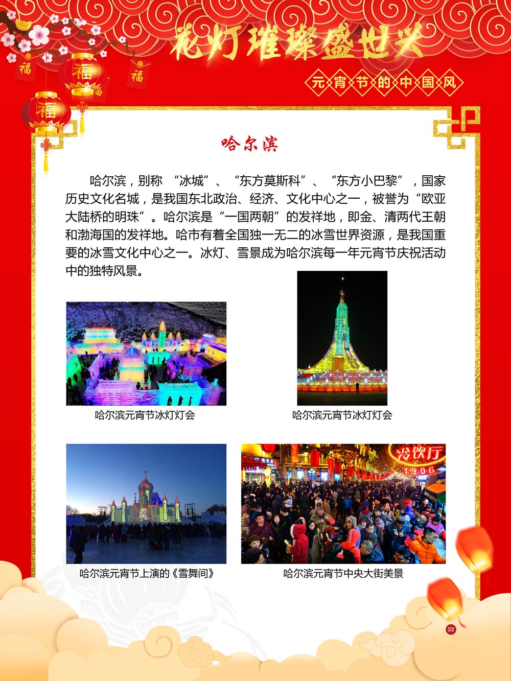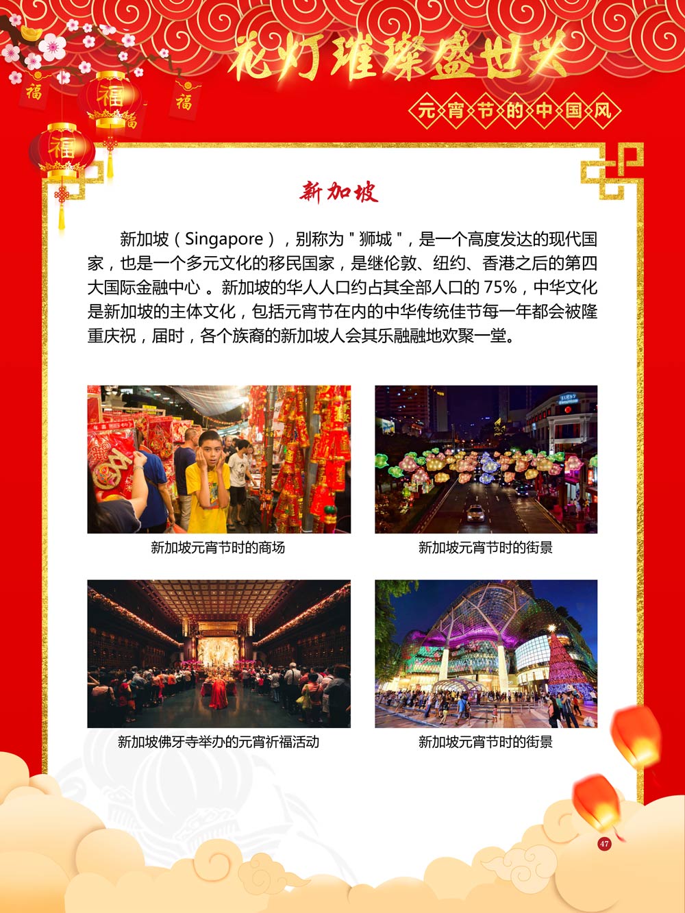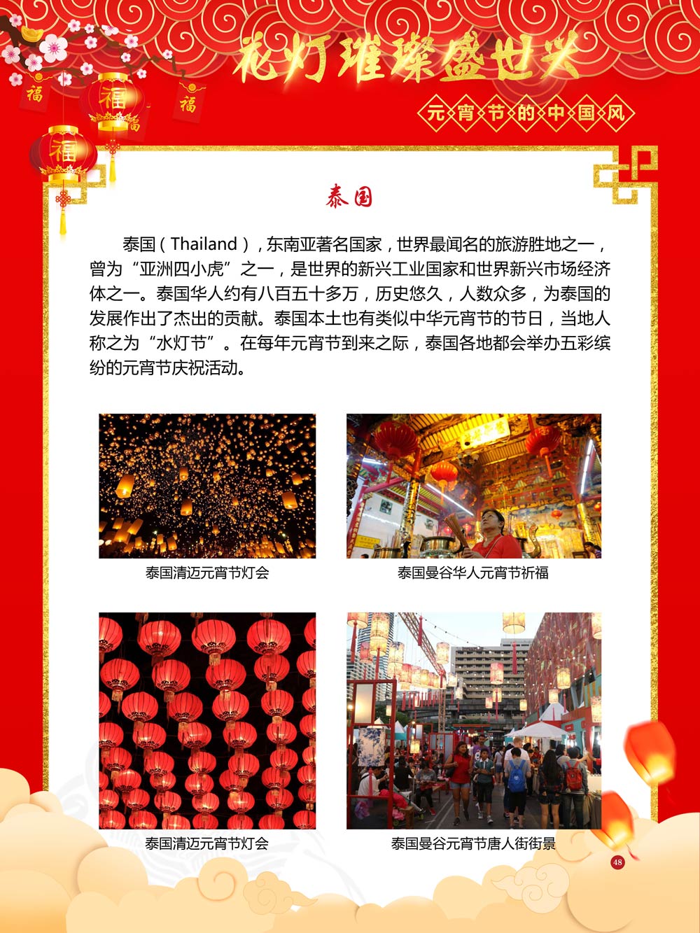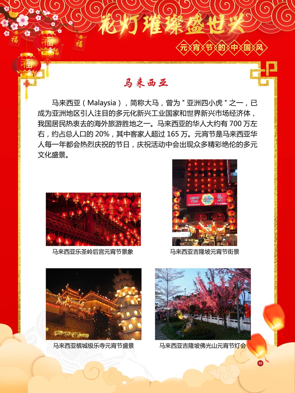 过完春节过十五,正月十五闹元宵!一年一度的元宵节又要喜气洋洋的登场了!值此佳节来临之际,我们首先给大家拜一个晚年,同时祝愿大家元宵节快乐!元宵节的历史源远流长,形成了其富有特色的节日风情,是中华民族的重要传统节日之一。 随着全球化时代到来后,全世界的各大文明形态和多种多样的文化迎来了有史以来最大的深度融合。中华传统文化也乘着文化全球化的快车,通过遍布世界各地的华侨华人传播到了世界上的每一个角落。元宵节也在此背景下,由一个中华传统节日逐渐的发展为一个具有浓重现代多元气息的世界节日。元宵节的庆祝活动也不在仅仅局限在中华文化圈内,而是逐渐地扩大到了更大的国际范围中。越来越多的世界各地居民领略到了我国元宵节独特的魅力风采,而且也在逐渐地加深理解元宵节蕴含的丰富内涵。各色皮肤和各种语言的人们越来越积极地加入到庆祝元宵节的队伍中来,丰富多彩的国外文化也随之自然融入到传统的中华元宵节文化中去。 今天,庆祝元宵佳节的活动已经在世界各地如雨后春笋般出现,元宵节已经成为了富有鲜明中国风的重要东方文化符号。我们将通过本展为广大观众朋友们呈现这一幅幅张灯结彩且充满欢声笑语的精美画卷。
