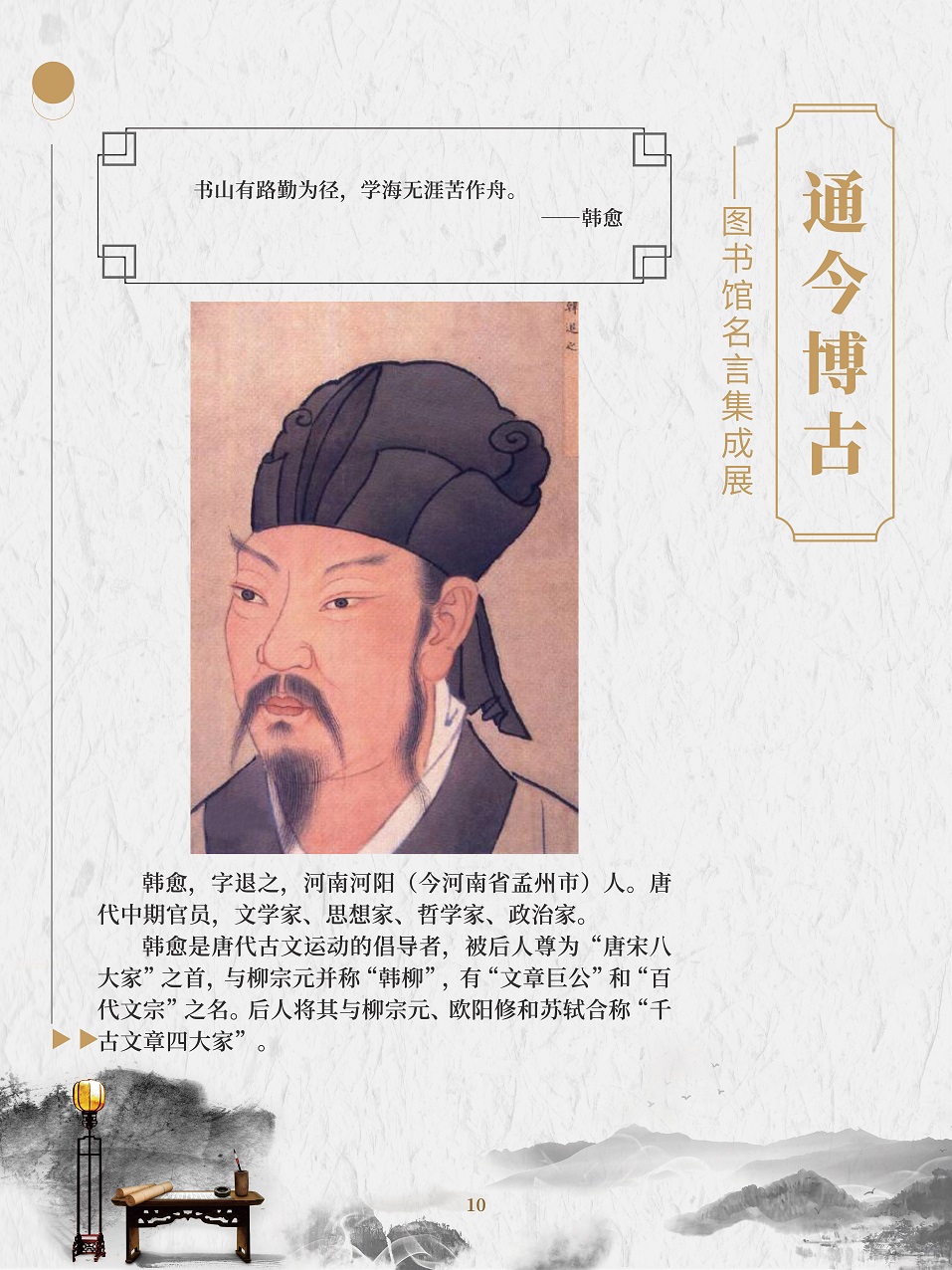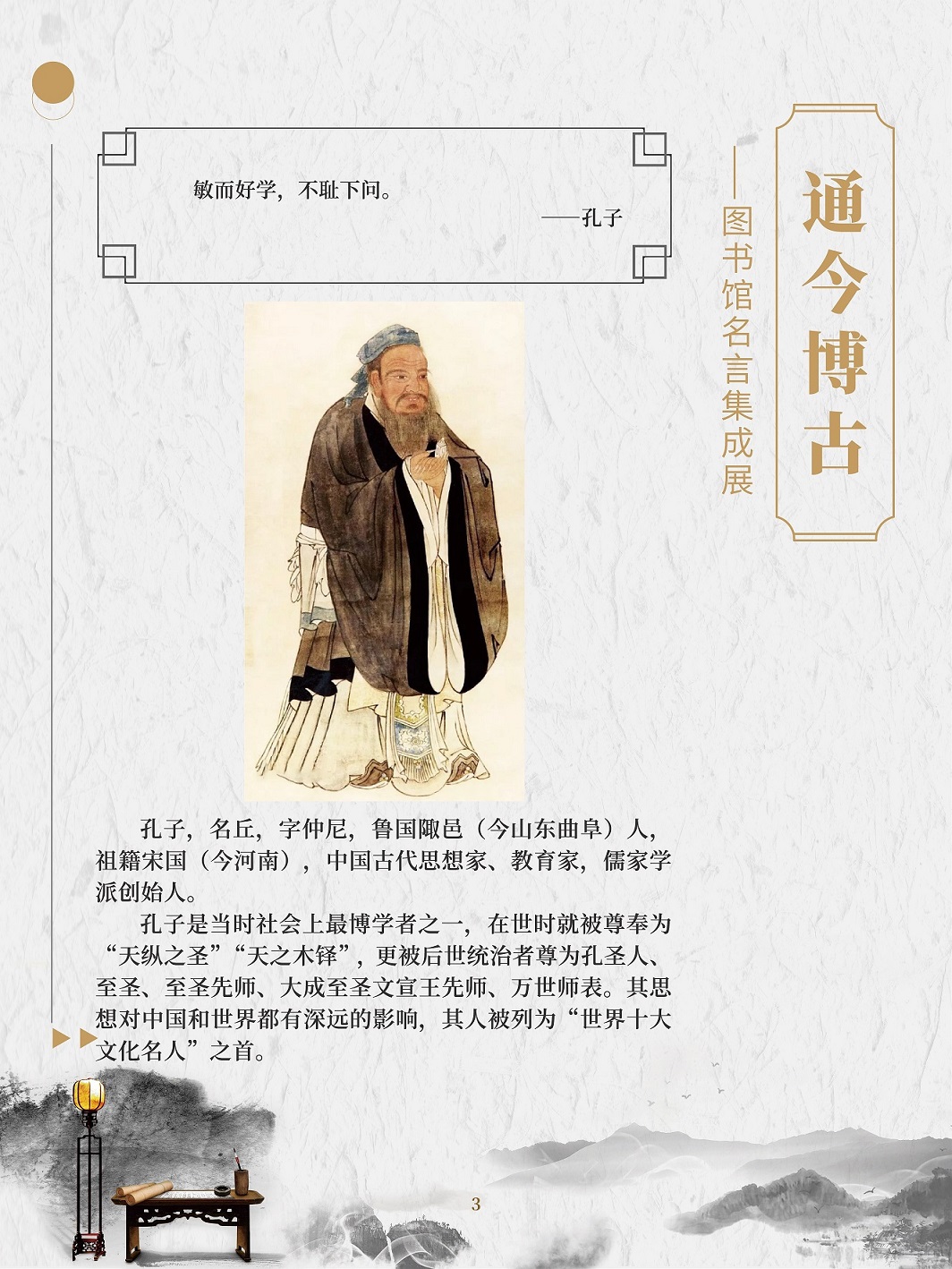 名人名言是人类思想的精华,智慧的结晶。面对书海浩瀚,语林苍茫,感悟名人名言,对于每个人来说,都是明智的选择。一句句铿锵有力的名言,就是一个个思想火花,可以点燃青春的热情,激发人们的奋斗精神;一句句闪烁着智慧光芒的名人名言,就像一座座人生的灯塔,照耀着人们前进的道路。 在2020年“4·23世界读书日”来临之际,为了倡导全民阅读,引导广大群众逐步形成爱读书、多读书、读好书的阅读习惯,特举办此展览。展览以“读书与学习”为主题的名人名言为主线,让广大观众领略古今中外名人名言的内涵和风采。 “最是书香能致远,唯有读书方宁静”,建设学习型社会应该从阅读开始。一个善于阅读的人一定会成为有前途的人,一个善于阅读的民族一定会成为有希望的民族,一个善于阅读的国家一定会成为不断发展壮大的国家!